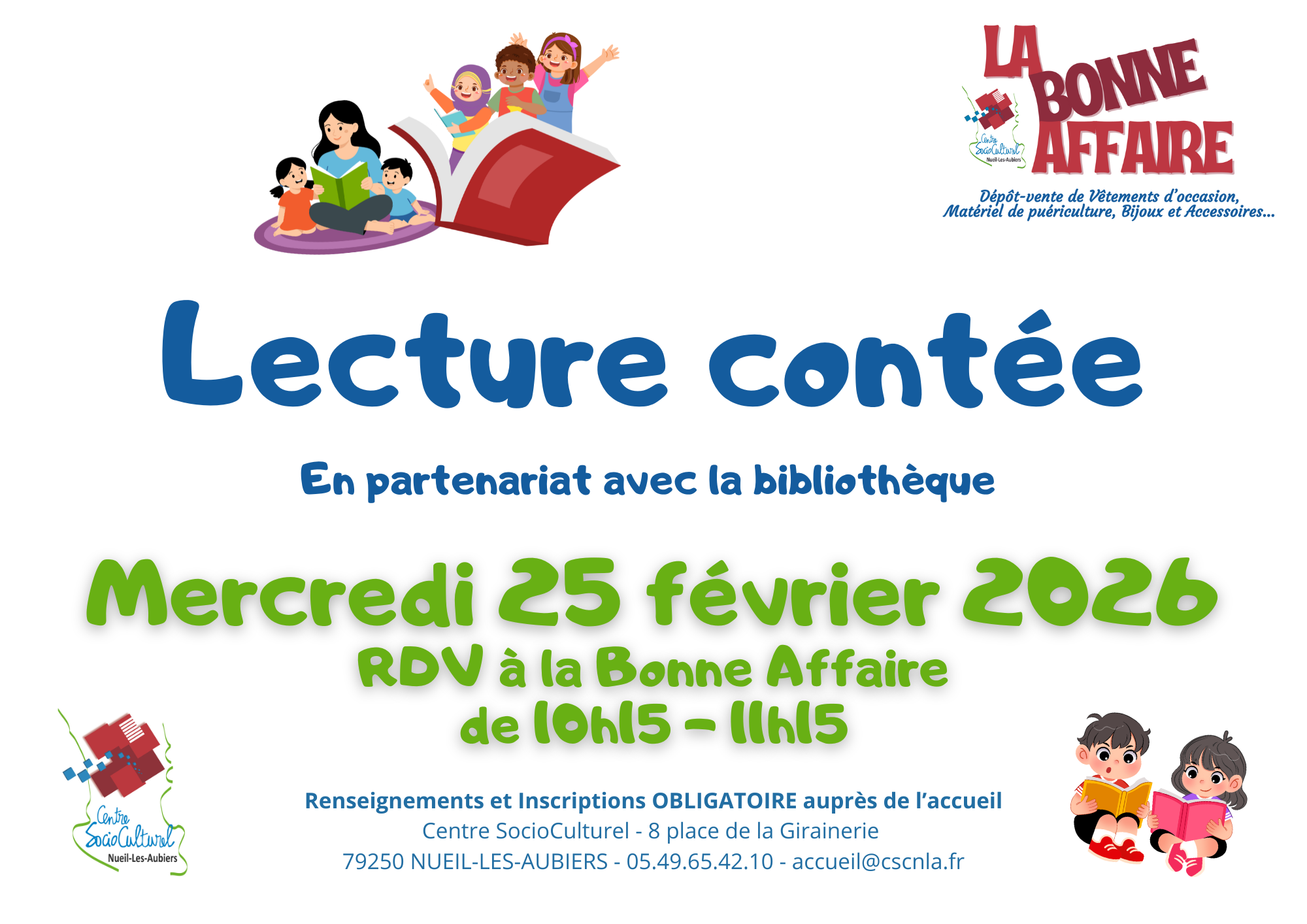 Mercredi 25 février 2026 de 10h00 à 11h00 à La Bonne Affaire