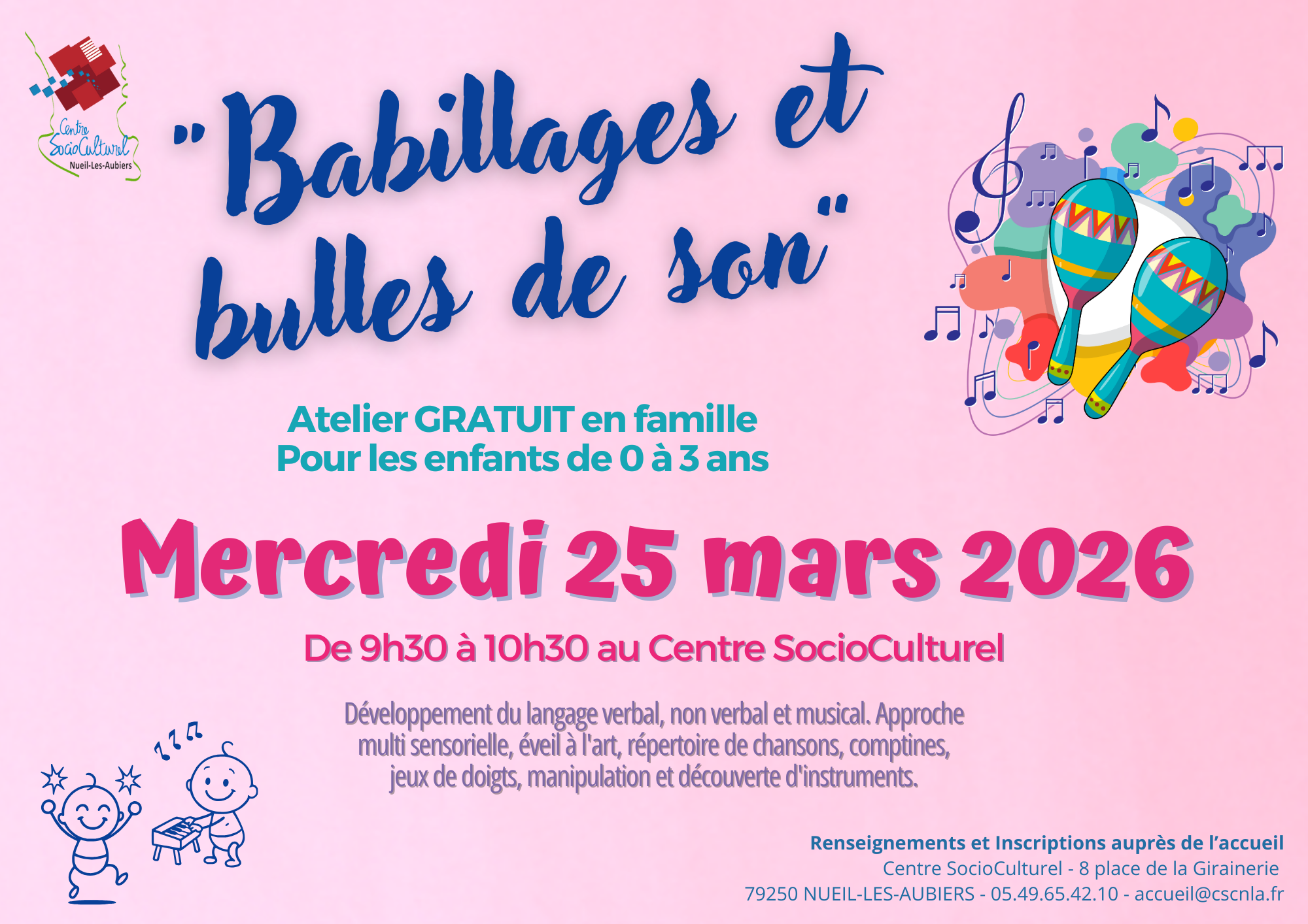 Mercredi 25 mars 2026 de 9h30 à 11h30 au Centre SocioCulturel