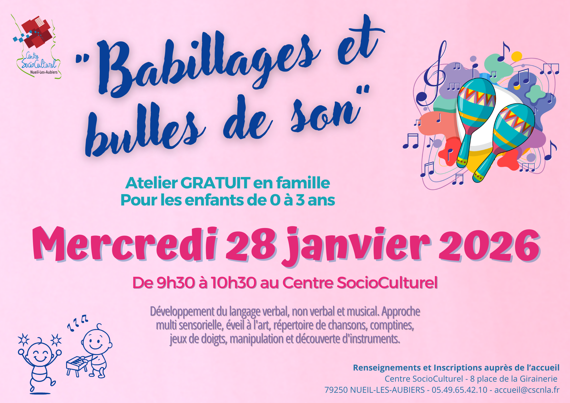 Mercredi 28 janvier 2026 de 9h30 à 11h30 au Centre SocioCulturel
